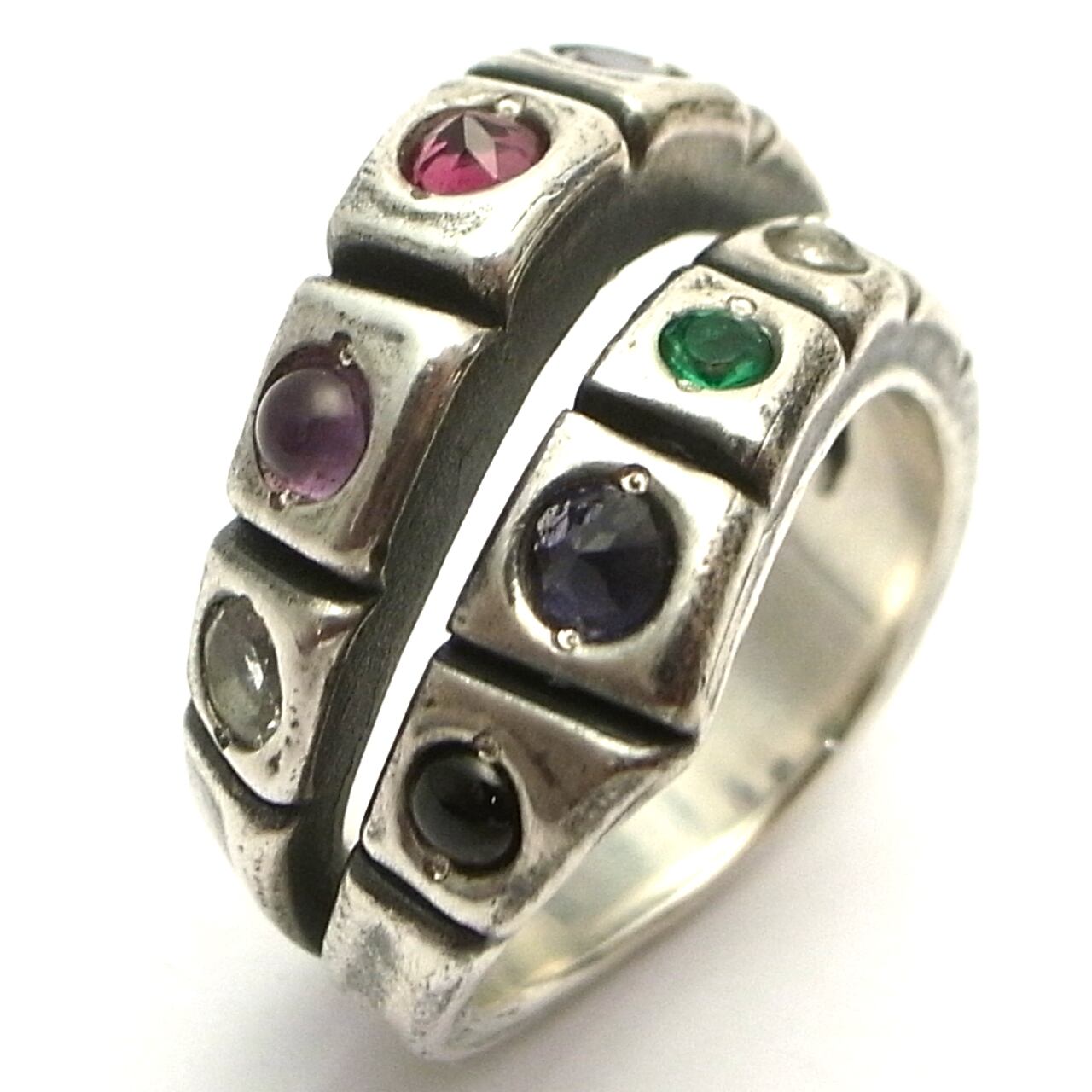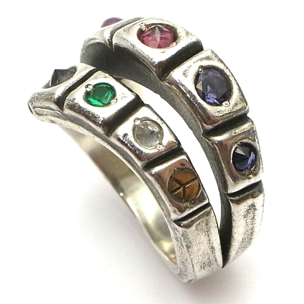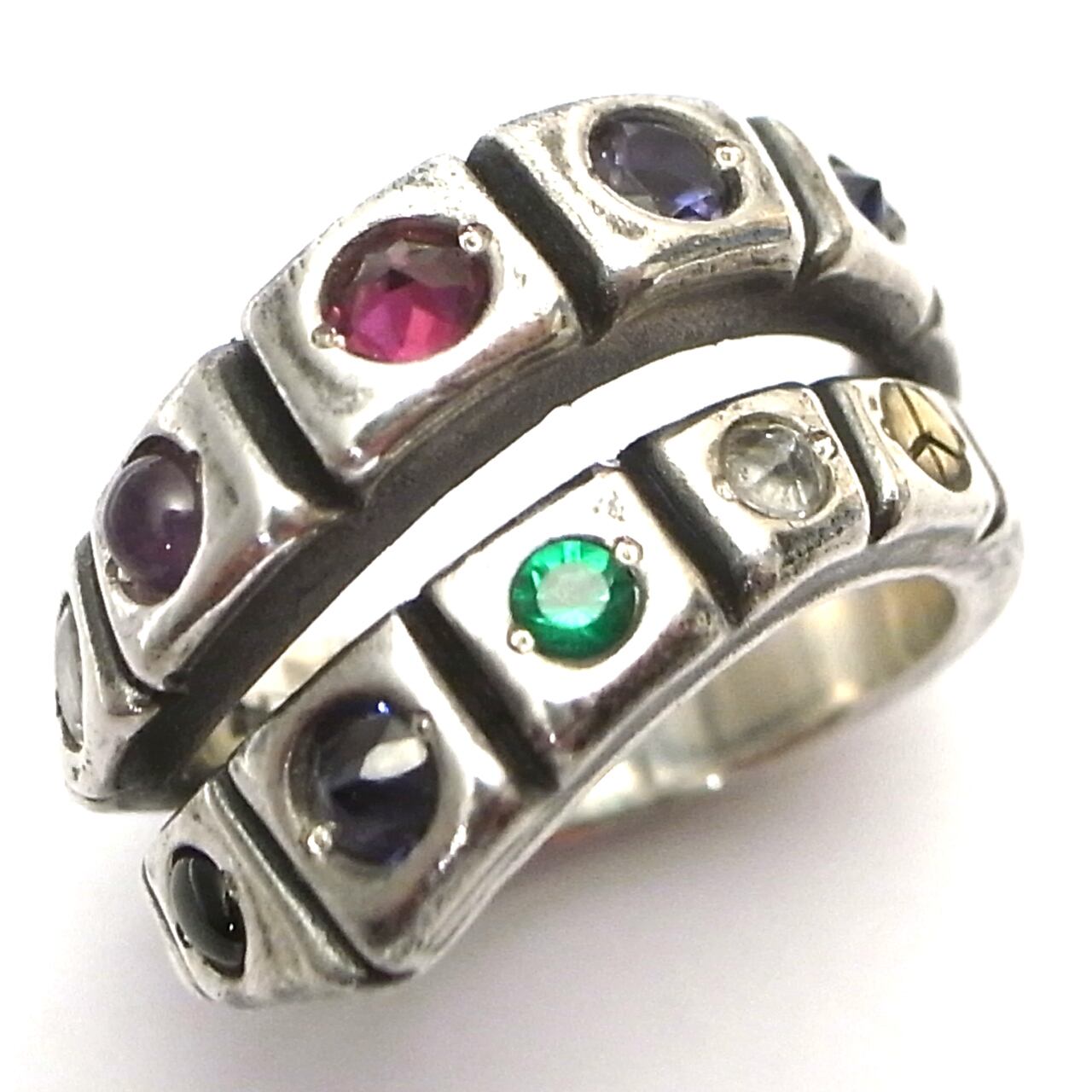 Stone:上段左から ホワイトトパーズ Φ3.5mm、アメジスト Φ3.5mm カボ、ロードライトガーネット Φ3.5mm、 アイオライト Φ3.5mm、サファイア 2.5mm、