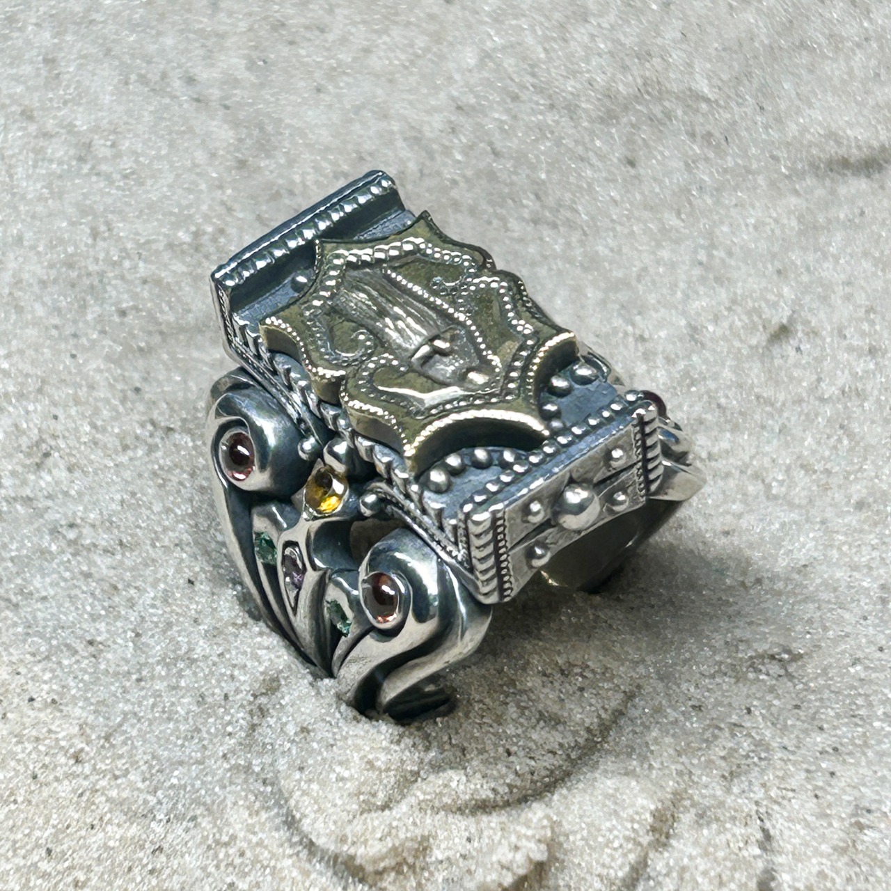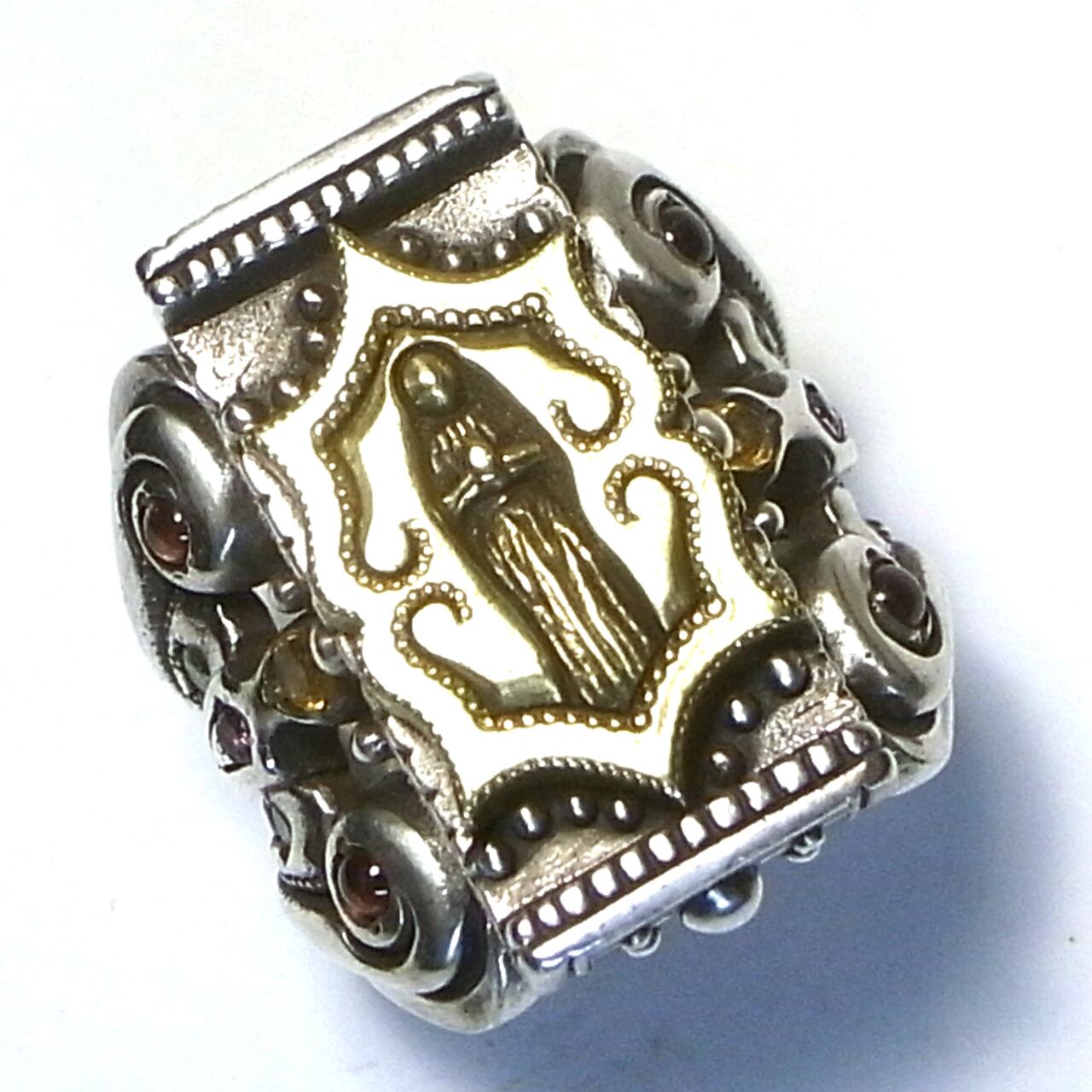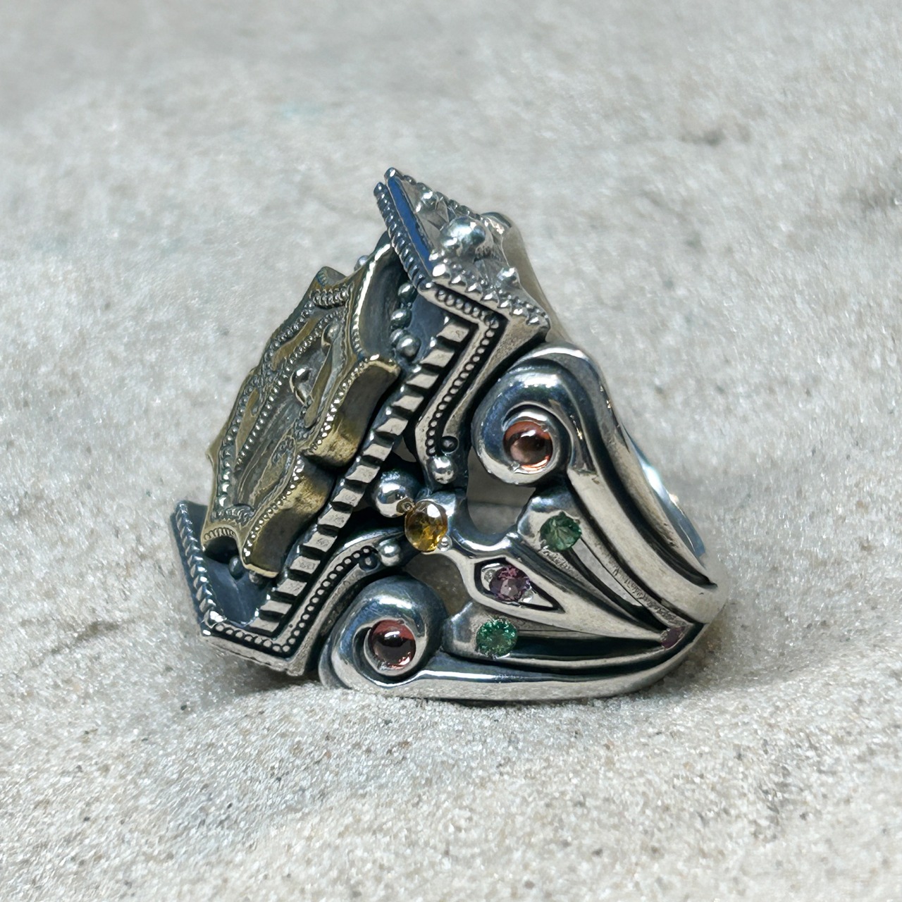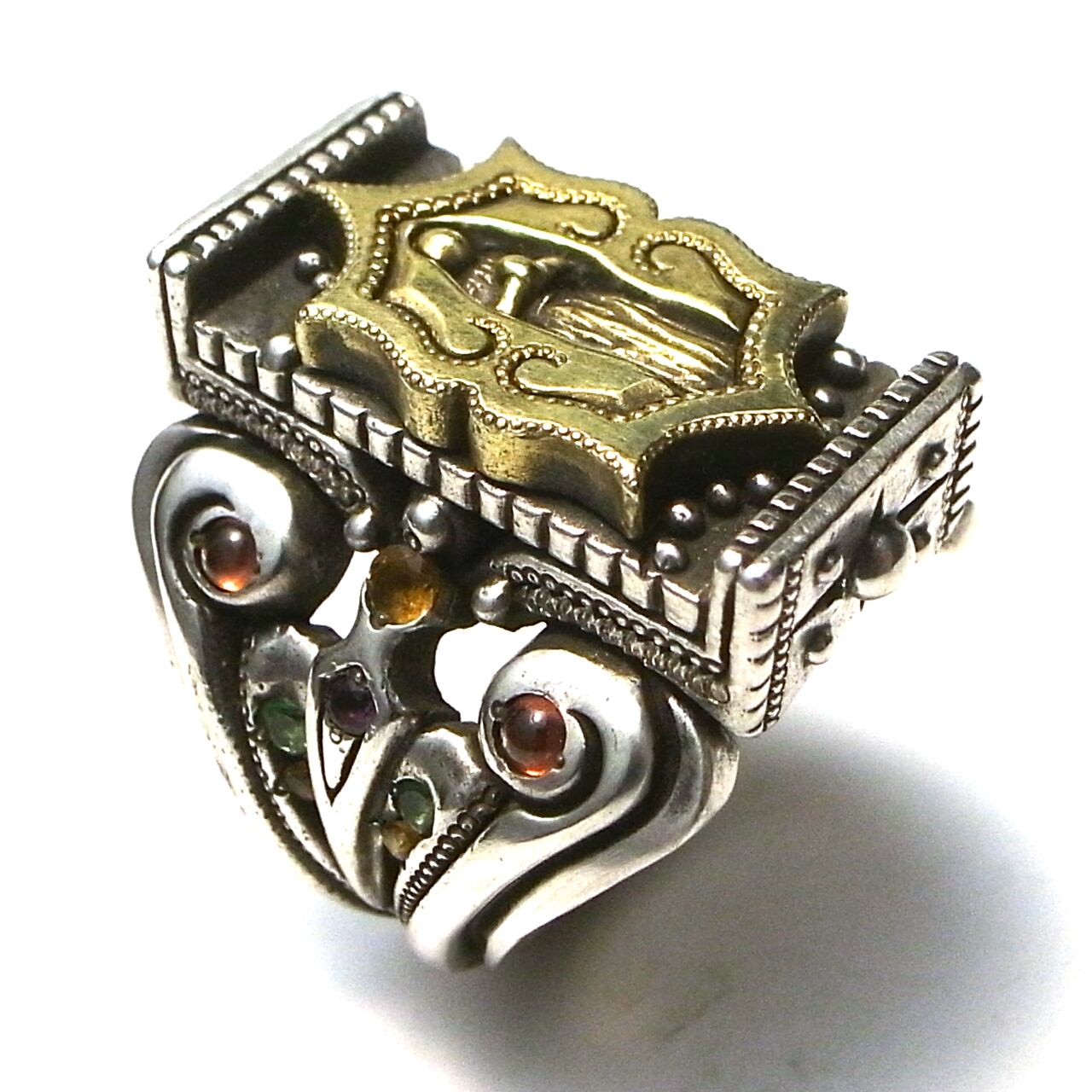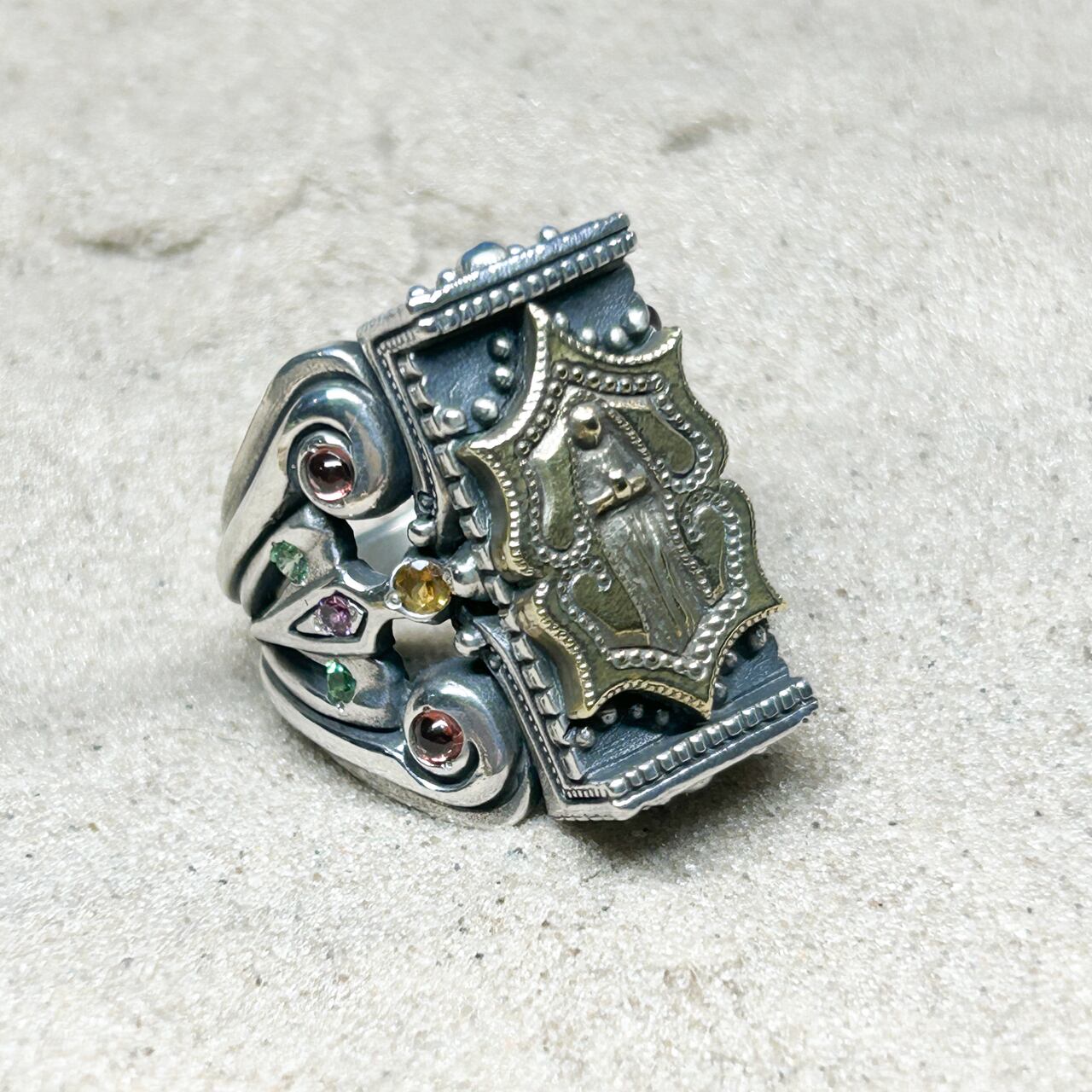 ガーネット Φ2.5mm x4、シトリン Φ2.5mm x4、グリーンガーネット Φ2.0mm x4、ロードライトガーネット Φ2.0mm x2、ルビー Φ1.5mm x2