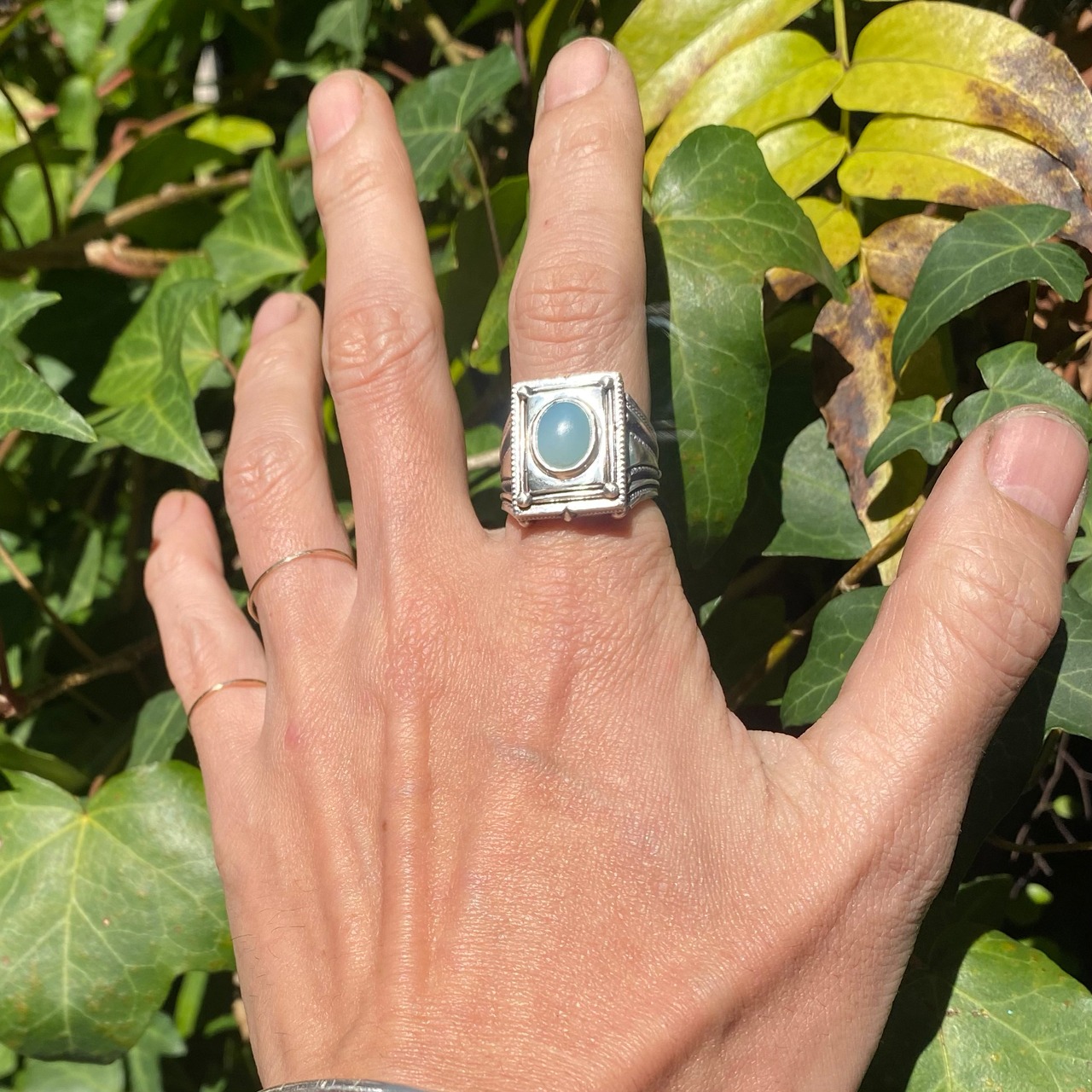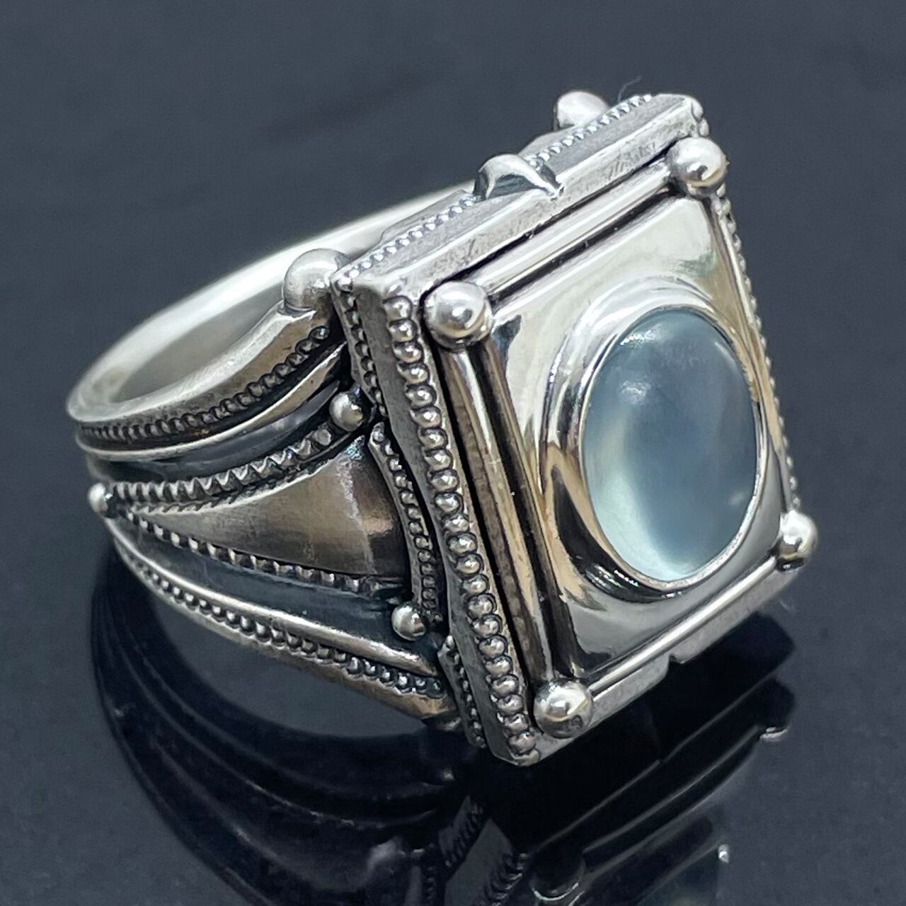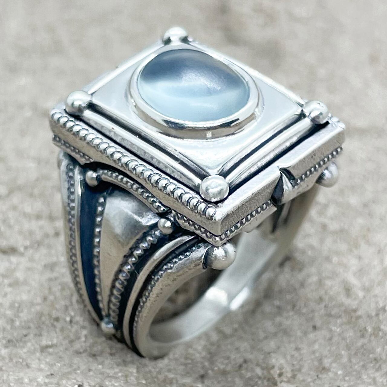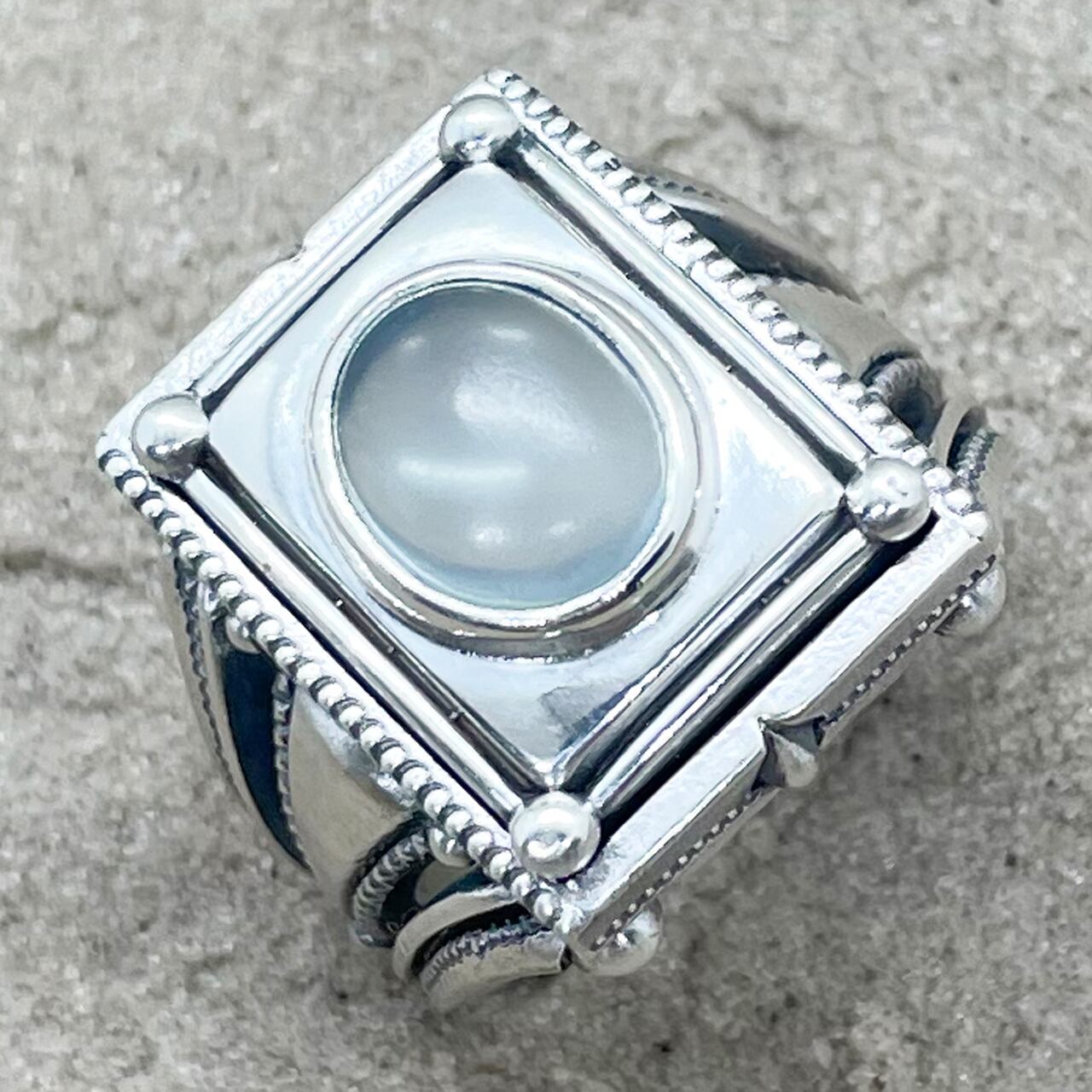 シルバーにマット加工のブルーオパール